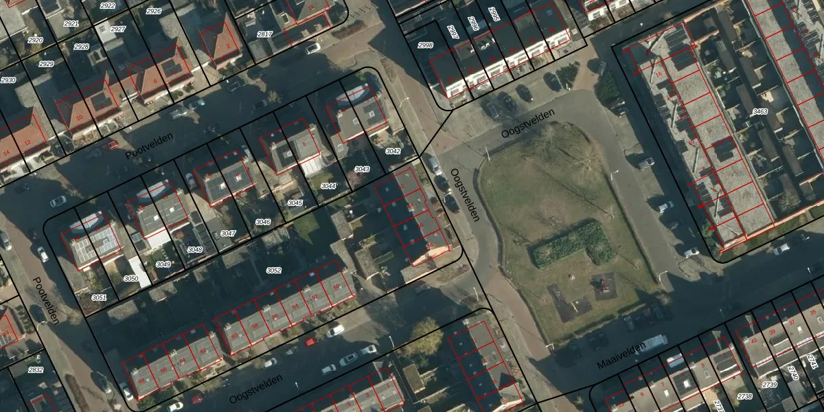 Oogstvelden 44 is gelegen op kadastraal perceel BES00K3052. Deze kadastrale aanduiding is uniek en wordt gebruikt door het Kadaster om eigendomsrechten en andere zakelijke rechten vast te leggen. Het perceel maakt onderdeel uit van de kadastrale gemeente Best.