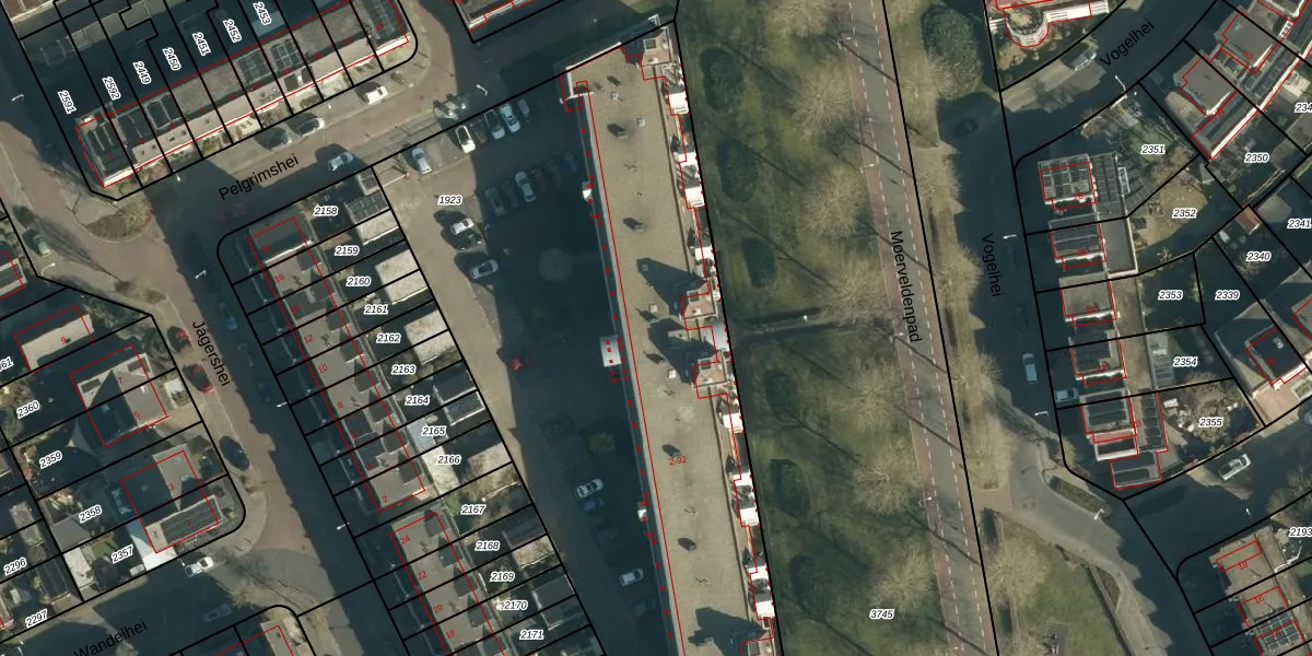 Het perceel waarop Pelgrimshei 64 staat heeft een oppervlakte van 3711 m². Dit is een zeer groot perceel. De perceeloppervlakte wordt geregistreerd door het Kadaster. Gedetailleerde informatie over de maten van dit perceel kunt u vinden in het rapport Kadastrale kaart met maatvoering van Pelgrimshei 64.