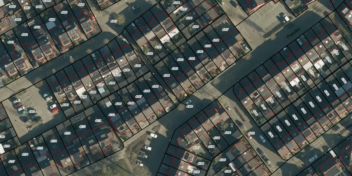Het perceel waarop Populier 29 staat heeft een oppervlakte van 156 m². Dit is een middelgroot perceel. De perceeloppervlakte wordt geregistreerd door het Kadaster. Gedetailleerde informatie over de maten van dit perceel kunt u vinden in het rapport Kadastrale kaart met maatvoering van Populier 29.