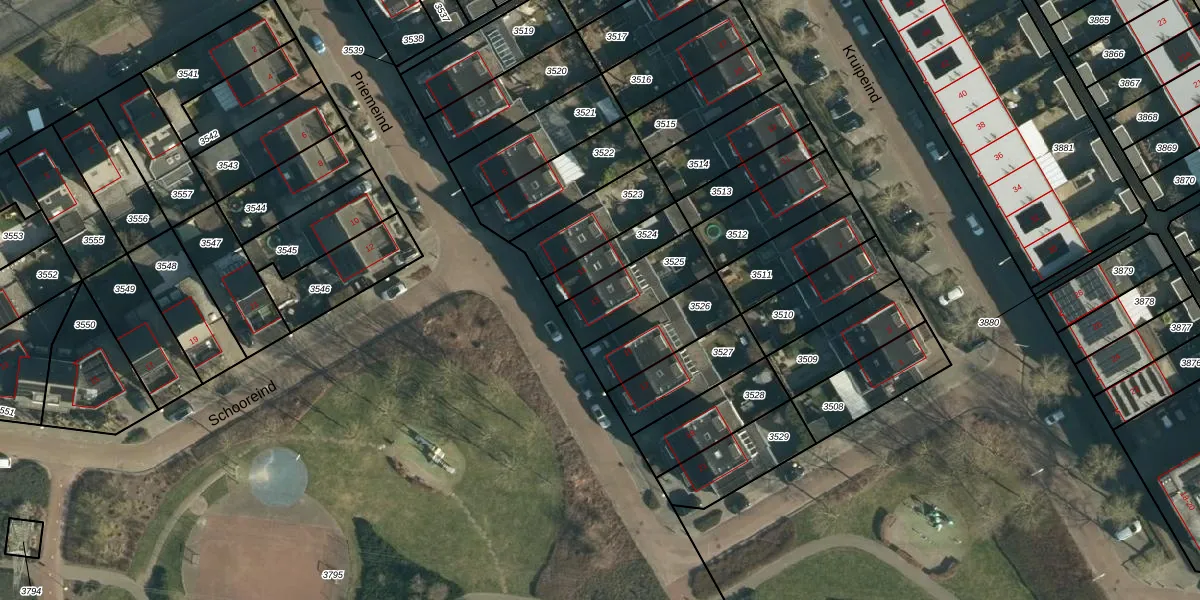 Priemeind 13 is gelegen op kadastraal perceel BES00K3525. Deze kadastrale aanduiding is uniek en wordt gebruikt door het Kadaster om eigendomsrechten en andere zakelijke rechten vast te leggen. Het perceel maakt onderdeel uit van de kadastrale gemeente Best.