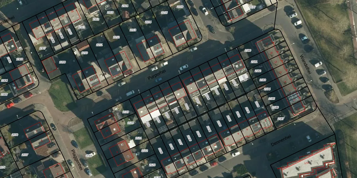 Het perceel waarop Purperhei 13 staat heeft een oppervlakte van 171 m². Dit is een middelgroot perceel. De perceeloppervlakte wordt geregistreerd door het Kadaster. Gedetailleerde informatie over de maten van dit perceel kunt u vinden in het rapport Kadastrale kaart met maatvoering van Purperhei 13.