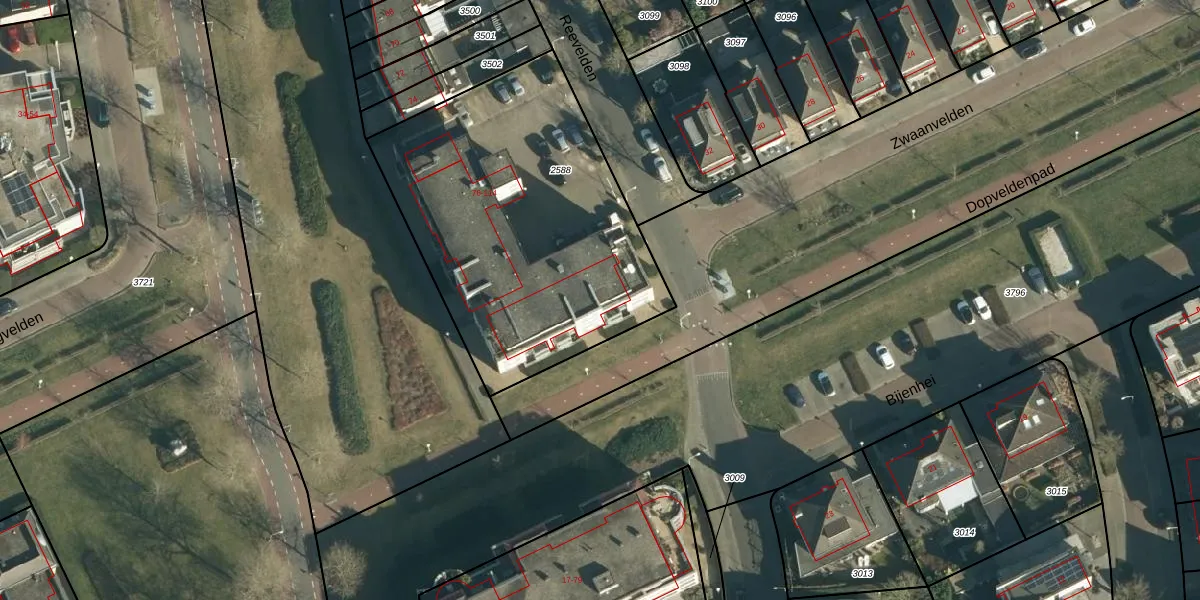 Het perceel waarop Reevelden 94 staat heeft een oppervlakte van 1643 m². Dit is een zeer groot perceel. De perceeloppervlakte wordt geregistreerd door het Kadaster. Gedetailleerde informatie over de maten van dit perceel kunt u vinden in het rapport Kadastrale kaart met maatvoering van Reevelden 94.