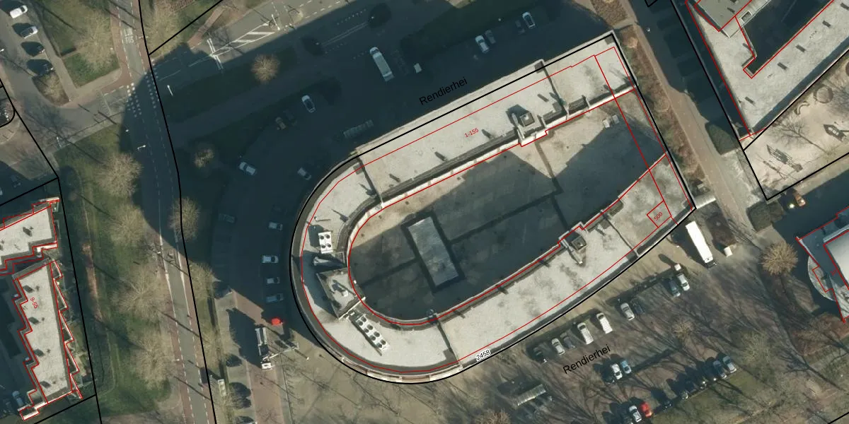 Het perceel waarop Rendierhei 43 staat heeft een oppervlakte van 4761 m². Dit is een zeer groot perceel. De perceeloppervlakte wordt geregistreerd door het Kadaster. Gedetailleerde informatie over de maten van dit perceel kunt u vinden in het rapport Kadastrale kaart met maatvoering van Rendierhei 43.
