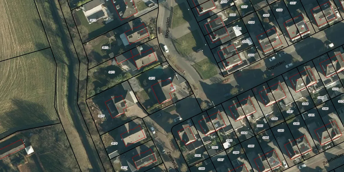 Rogvelden 38 is gelegen op kadastraal perceel BES00K3474. Deze kadastrale aanduiding is uniek en wordt gebruikt door het Kadaster om eigendomsrechten en andere zakelijke rechten vast te leggen. Het perceel maakt onderdeel uit van de kadastrale gemeente Best.