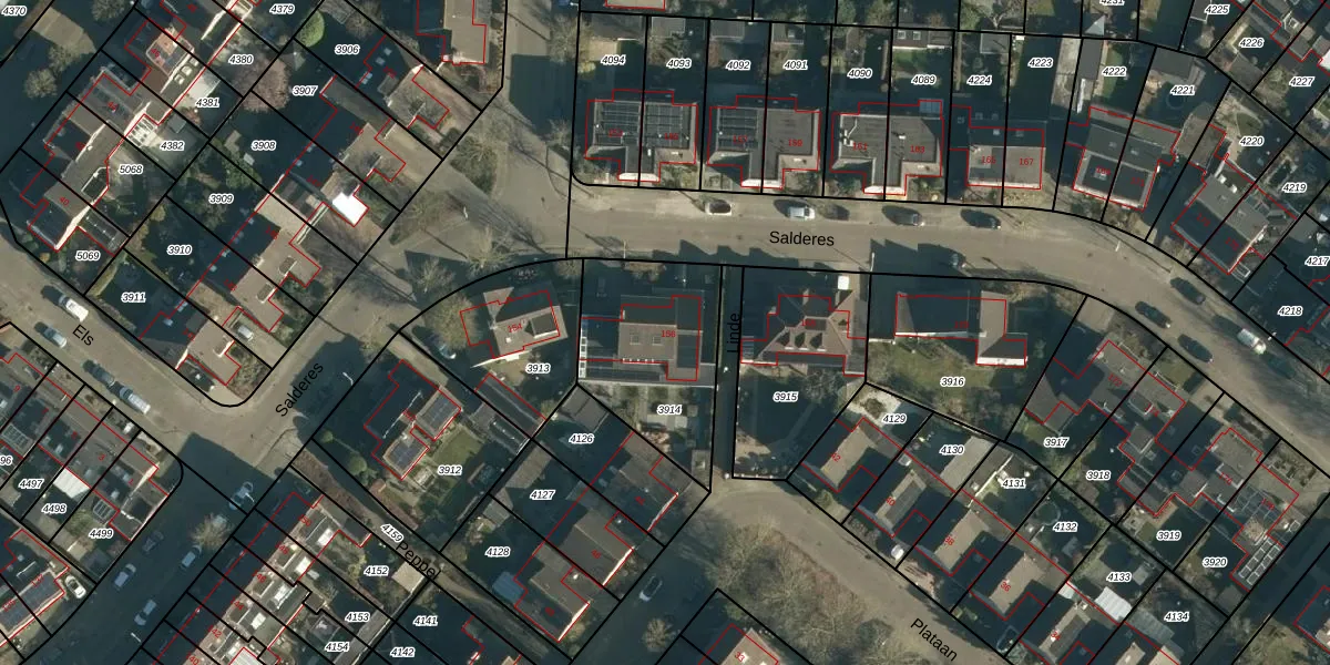 Salderes 156 is gelegen op kadastraal perceel BES00H3914. Deze kadastrale aanduiding is uniek en wordt gebruikt door het Kadaster om eigendomsrechten en andere zakelijke rechten vast te leggen. Het perceel maakt onderdeel uit van de kadastrale gemeente Best.