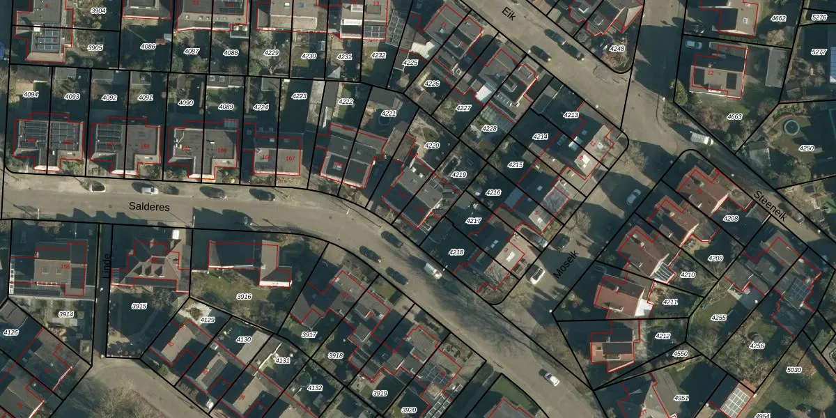 Gebruik de zoekbalk of klik op een perceel voor informatie over de adressen binnen dit perceel.