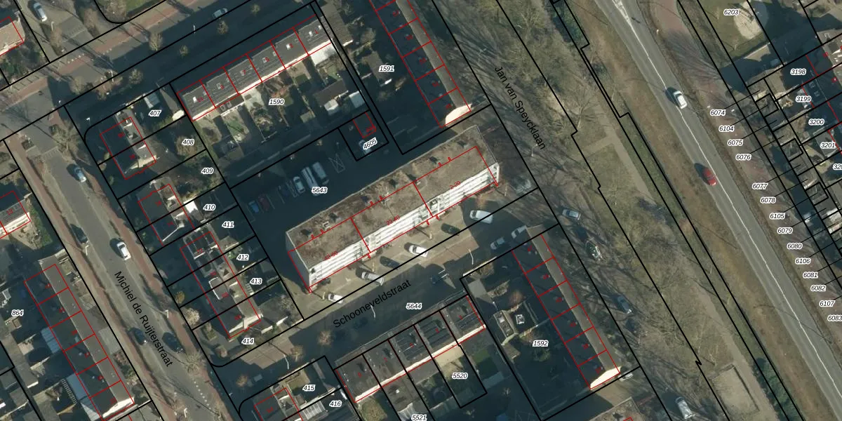 Het perceel waarop Schooneveldstraat 22 staat heeft een oppervlakte van 1941 m². Dit is een zeer groot perceel. De perceeloppervlakte wordt geregistreerd door het Kadaster. Gedetailleerde informatie over de maten van dit perceel kunt u vinden in het rapport Kadastrale kaart met maatvoering van Schooneveldstraat 22.