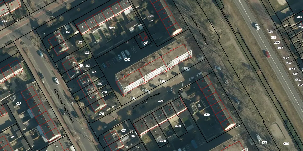 Schooneveldstraat 34 is gelegen op kadastraal perceel BES00H5643. Deze kadastrale aanduiding is uniek en wordt gebruikt door het Kadaster om eigendomsrechten en andere zakelijke rechten vast te leggen. Het perceel maakt onderdeel uit van de kadastrale gemeente Best.
