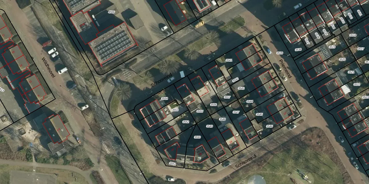 Schooreind 5 is gelegen op kadastraal perceel BES00K3555. Deze kadastrale aanduiding is uniek en wordt gebruikt door het Kadaster om eigendomsrechten en andere zakelijke rechten vast te leggen. Het perceel maakt onderdeel uit van de kadastrale gemeente Best.