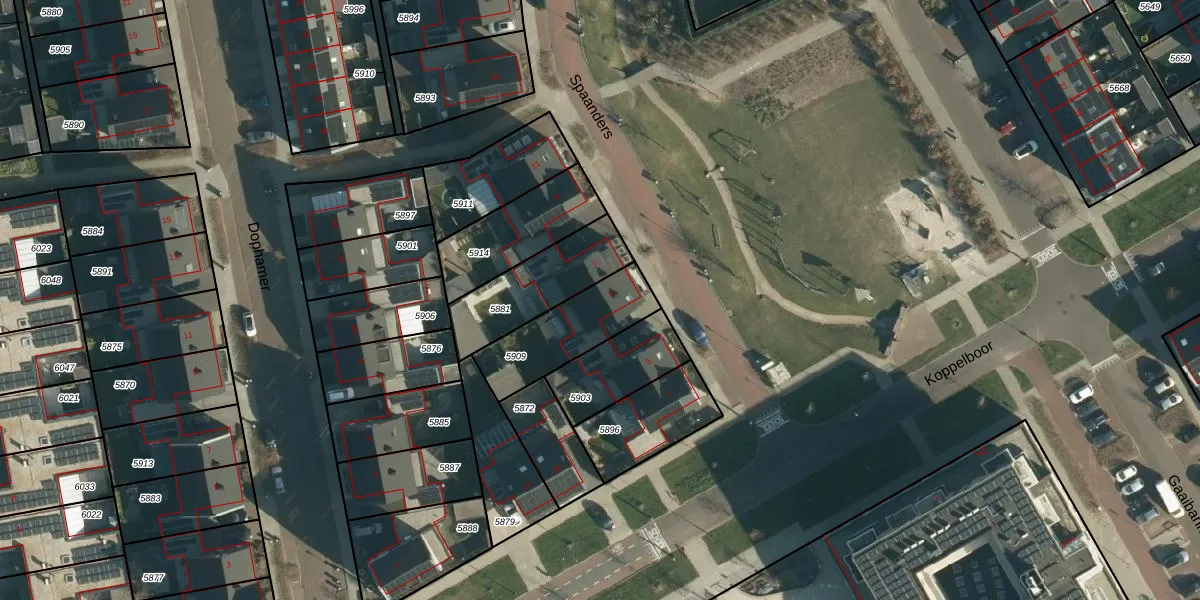 Gebruik de zoekbalk of klik op een perceel voor informatie over de adressen binnen dit perceel.