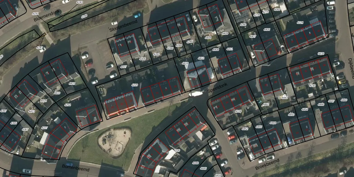 Het perceel waarop Speeldonk 25 staat heeft een oppervlakte van 960 m². Dit is een groot perceel. De perceeloppervlakte wordt geregistreerd door het Kadaster. Gedetailleerde informatie over de maten van dit perceel kunt u vinden in het rapport Kadastrale kaart met maatvoering van Speeldonk 25.