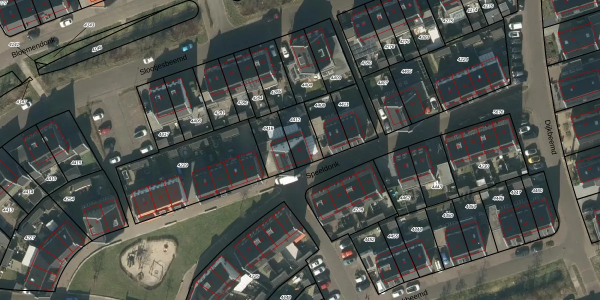 Gebruik de zoekbalk of klik op een perceel voor informatie over de adressen binnen dit perceel.