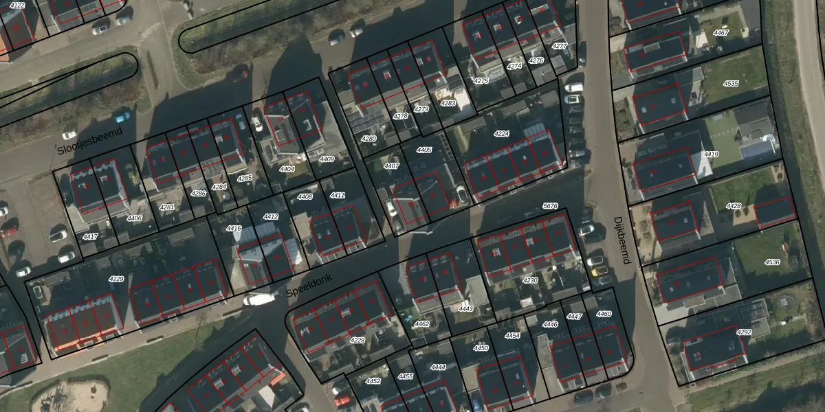 Het perceel waarop Speeldonk 35 staat heeft een oppervlakte van 197 m². Dit is een middelgroot perceel. De perceeloppervlakte wordt geregistreerd door het Kadaster. Gedetailleerde informatie over de maten van dit perceel kunt u vinden in het rapport Kadastrale kaart met maatvoering van Speeldonk 35.