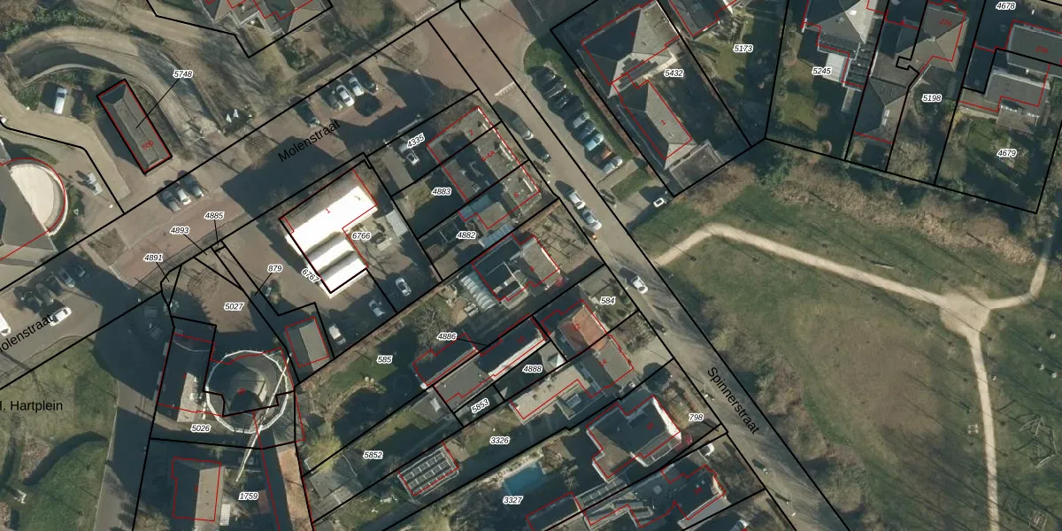 Het perceel waarop Spinnerstraat 8 staat heeft een oppervlakte van 970 m². Dit is een groot perceel. De perceeloppervlakte wordt geregistreerd door het Kadaster. Gedetailleerde informatie over de maten van dit perceel kunt u vinden in het rapport Kadastrale kaart met maatvoering van Spinnerstraat 8.