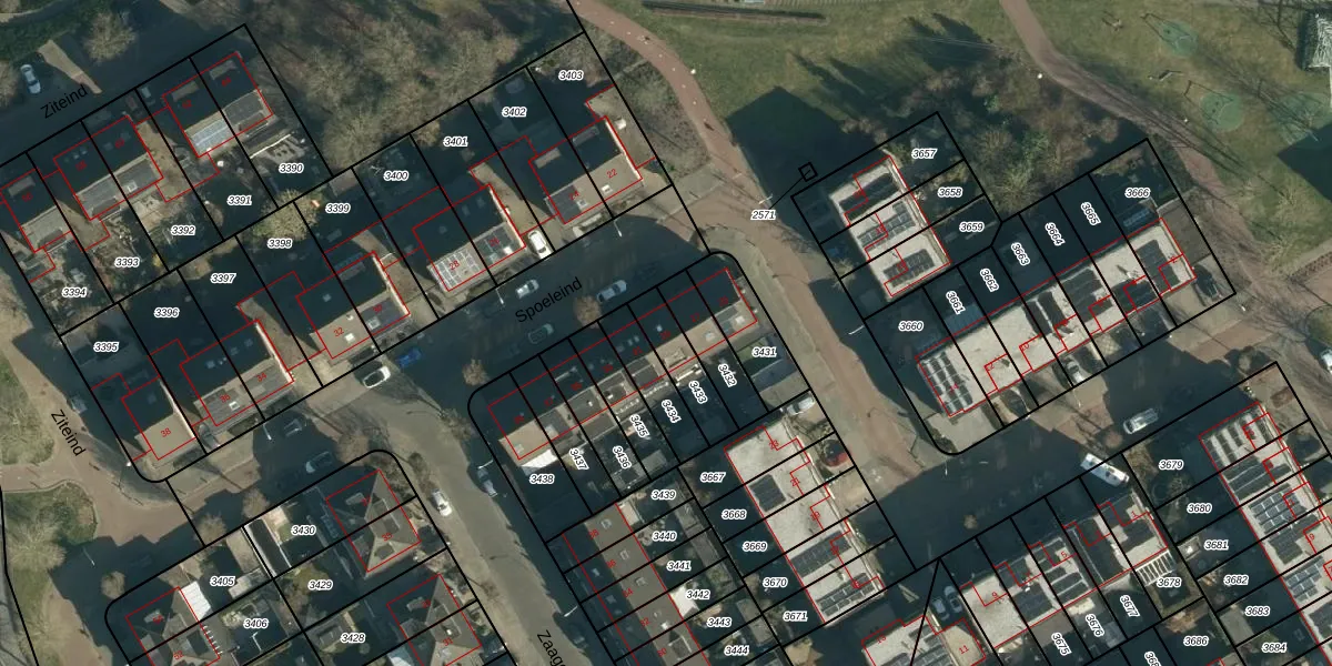 Gebruik de zoekbalk of klik op een perceel voor informatie over de adressen binnen dit perceel.