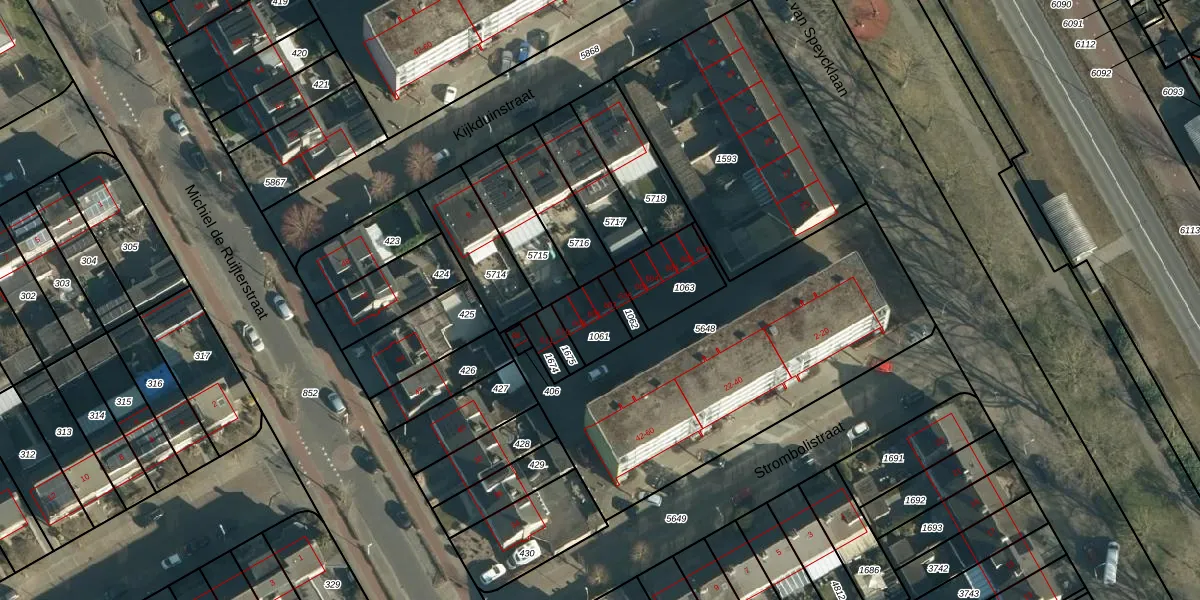 Het perceel waarop Strombolistraat 607 staat heeft een oppervlakte van 107 m². Dit is een middelgroot perceel. De perceeloppervlakte wordt geregistreerd door het Kadaster. Gedetailleerde informatie over de maten van dit perceel kunt u vinden in het rapport Kadastrale kaart met maatvoering van Strombolistraat 607.