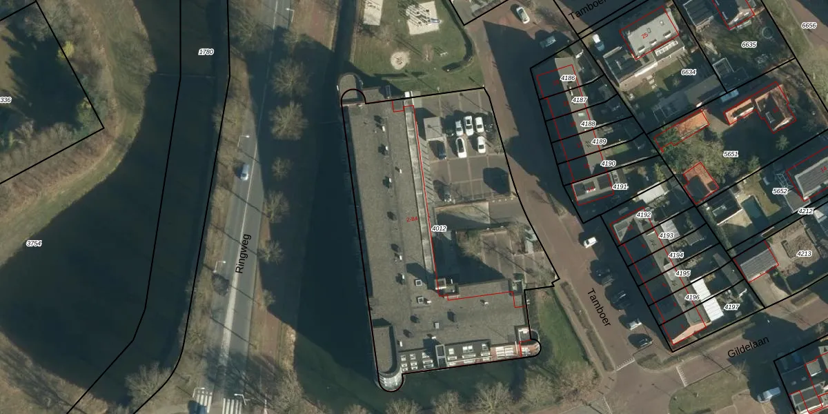 Het perceel waarop Tamboer 14 staat heeft een oppervlakte van 2630 m². Dit is een zeer groot perceel. De perceeloppervlakte wordt geregistreerd door het Kadaster. Gedetailleerde informatie over de maten van dit perceel kunt u vinden in het rapport Kadastrale kaart met maatvoering van Tamboer 14.