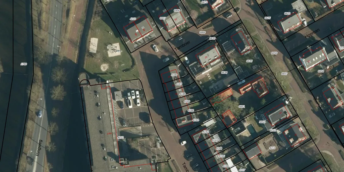 Het perceel waarop Tamboer 21 staat heeft een oppervlakte van 100 m². Dit is een middelgroot perceel. De perceeloppervlakte wordt geregistreerd door het Kadaster. Gedetailleerde informatie over de maten van dit perceel kunt u vinden in het rapport Kadastrale kaart met maatvoering van Tamboer 21.
