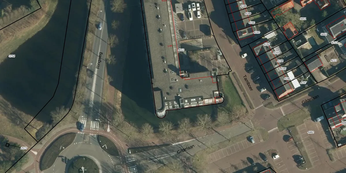 Het perceel waarop Tamboer 32 staat heeft een oppervlakte van 2630 m². Dit is een zeer groot perceel. De perceeloppervlakte wordt geregistreerd door het Kadaster. Gedetailleerde informatie over de maten van dit perceel kunt u vinden in het rapport Kadastrale kaart met maatvoering van Tamboer 32.