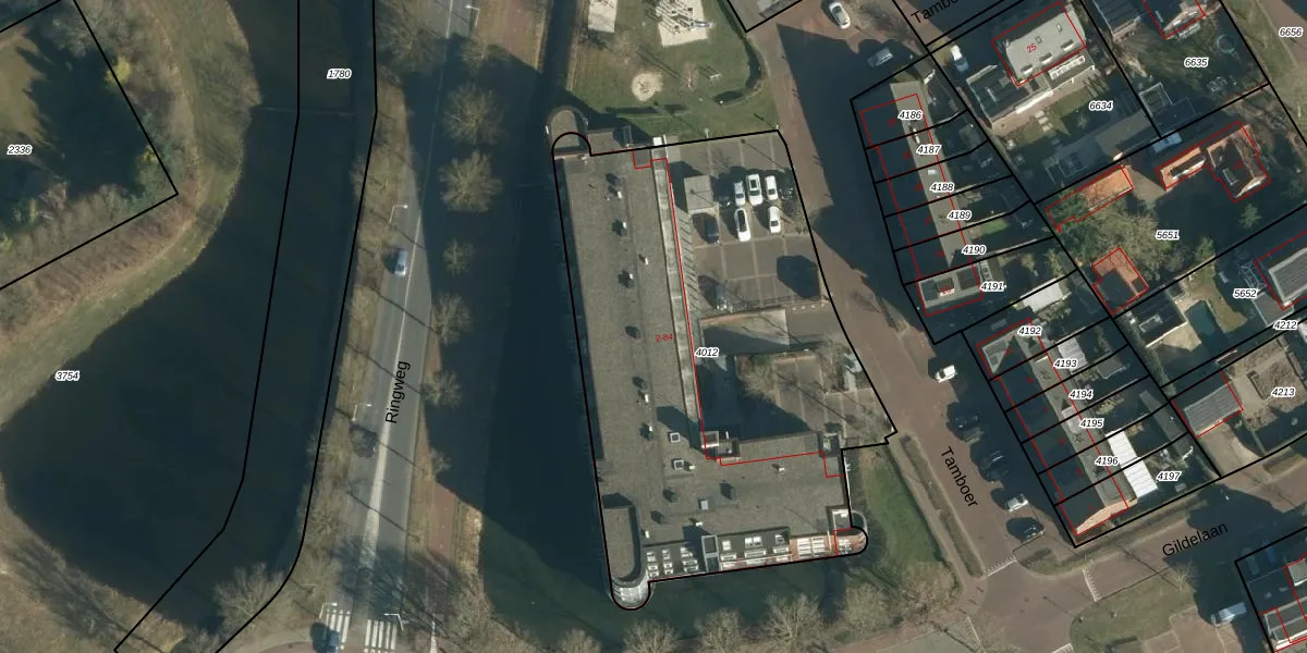 Het perceel waarop Tamboer 38 staat heeft een oppervlakte van 2630 m². Dit is een zeer groot perceel. De perceeloppervlakte wordt geregistreerd door het Kadaster. Gedetailleerde informatie over de maten van dit perceel kunt u vinden in het rapport Kadastrale kaart met maatvoering van Tamboer 38.