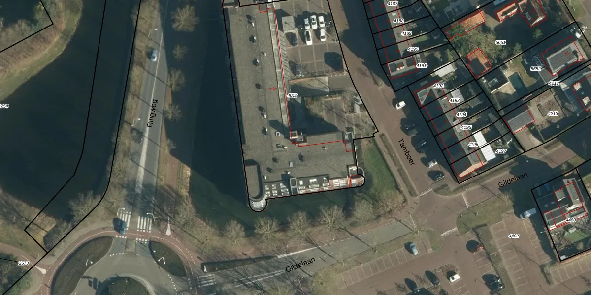 Het perceel waarop Tamboer 4 staat heeft een oppervlakte van 2630 m². Dit is een zeer groot perceel. De perceeloppervlakte wordt geregistreerd door het Kadaster. Gedetailleerde informatie over de maten van dit perceel kunt u vinden in het rapport Kadastrale kaart met maatvoering van Tamboer 4.