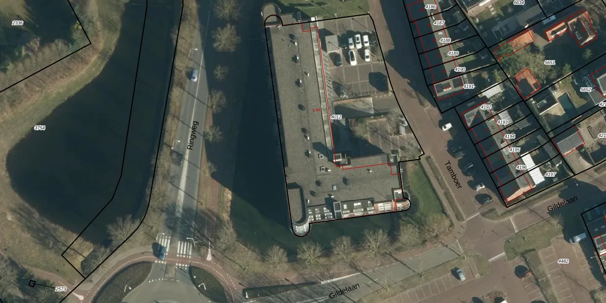 Het perceel waarop Tamboer 74 staat heeft een oppervlakte van 2630 m². Dit is een zeer groot perceel. De perceeloppervlakte wordt geregistreerd door het Kadaster. Gedetailleerde informatie over de maten van dit perceel kunt u vinden in het rapport Kadastrale kaart met maatvoering van Tamboer 74.