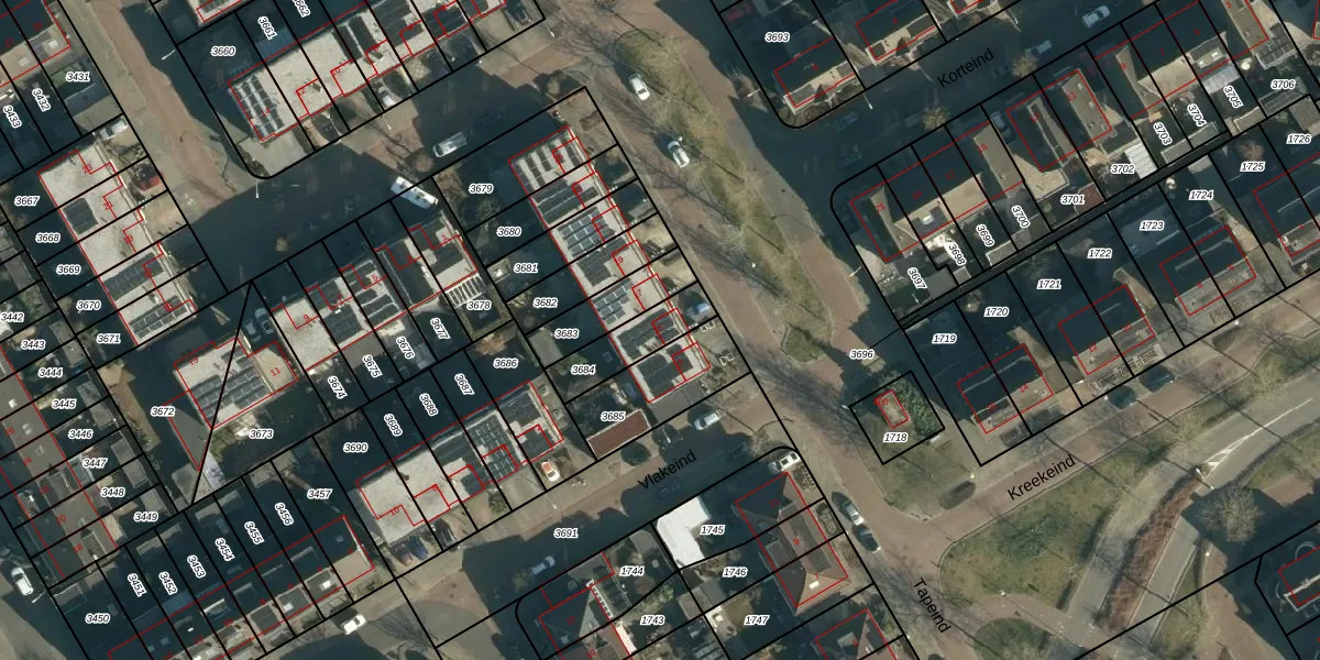 Het perceel waarop Tapeind 15 staat heeft een oppervlakte van 163 m². Dit is een middelgroot perceel. De perceeloppervlakte wordt geregistreerd door het Kadaster. Gedetailleerde informatie over de maten van dit perceel kunt u vinden in het rapport Kadastrale kaart met maatvoering van Tapeind 15.