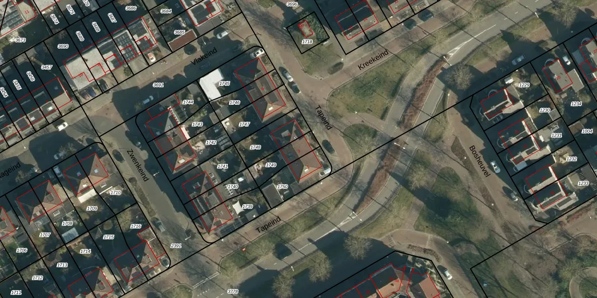 Tapeind 3 is gelegen op kadastraal perceel BES00K1749. Deze kadastrale aanduiding is uniek en wordt gebruikt door het Kadaster om eigendomsrechten en andere zakelijke rechten vast te leggen. Het perceel maakt onderdeel uit van de kadastrale gemeente Best.