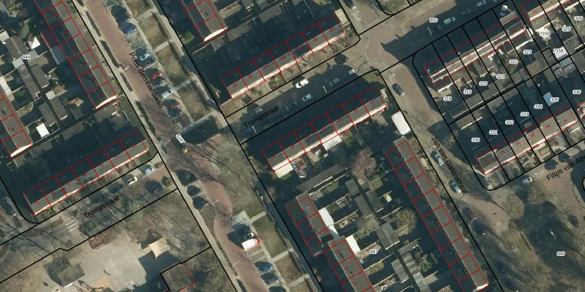 Het perceel waarop Trompstraat 35 staat heeft een oppervlakte van 5903 m². Dit is een zeer groot perceel. De perceeloppervlakte wordt geregistreerd door het Kadaster. Gedetailleerde informatie over de maten van dit perceel kunt u vinden in het rapport Kadastrale kaart met maatvoering van Trompstraat 35.