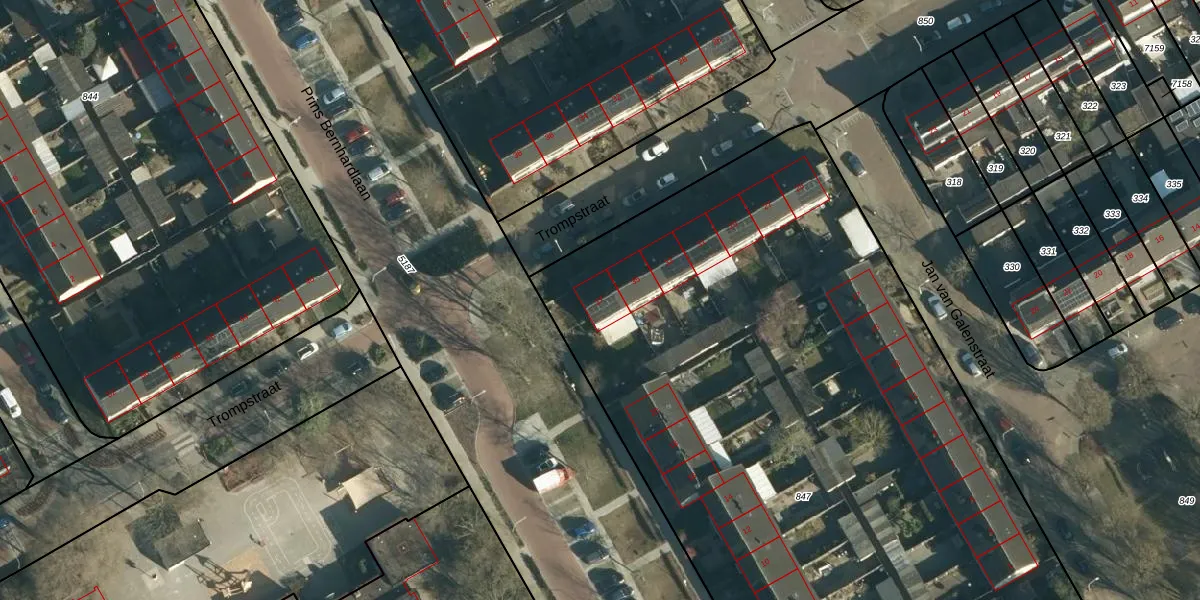 Het perceel waarop Trompstraat 37 staat heeft een oppervlakte van 5903 m². Dit is een zeer groot perceel. De perceeloppervlakte wordt geregistreerd door het Kadaster. Gedetailleerde informatie over de maten van dit perceel kunt u vinden in het rapport Kadastrale kaart met maatvoering van Trompstraat 37.