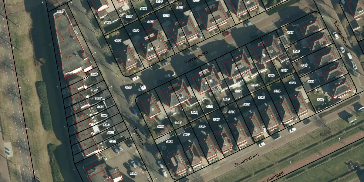 Gebruik de zoekbalk of klik op een perceel voor informatie over de adressen binnen dit perceel.