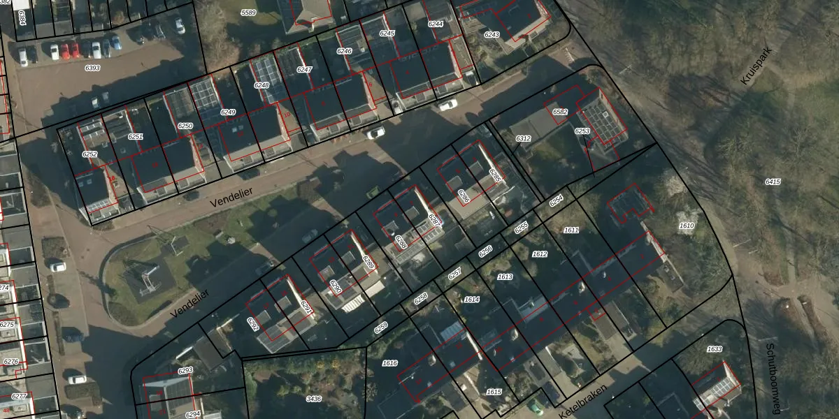 Het perceel waarop Vendelier 7 staat heeft een oppervlakte van 223 m². Dit is een middelgroot perceel. De perceeloppervlakte wordt geregistreerd door het Kadaster. Gedetailleerde informatie over de maten van dit perceel kunt u vinden in het rapport Kadastrale kaart met maatvoering van Vendelier 7.