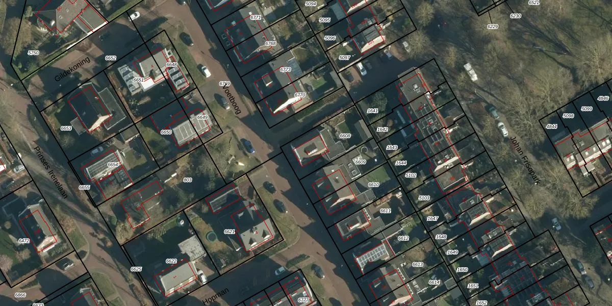 Het perceel waarop Voetboog 13 staat heeft een oppervlakte van 350 m². Dit is een groot perceel. De perceeloppervlakte wordt geregistreerd door het Kadaster. Gedetailleerde informatie over de maten van dit perceel kunt u vinden in het rapport Kadastrale kaart met maatvoering van Voetboog 13.