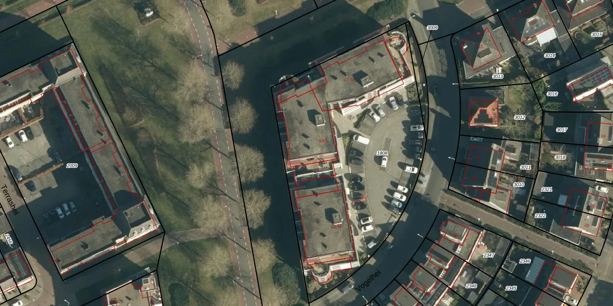 Het perceel waarop Vogelhei 37 staat heeft een oppervlakte van 2954 m². Dit is een zeer groot perceel. De perceeloppervlakte wordt geregistreerd door het Kadaster. Gedetailleerde informatie over de maten van dit perceel kunt u vinden in het rapport Kadastrale kaart met maatvoering van Vogelhei 37.