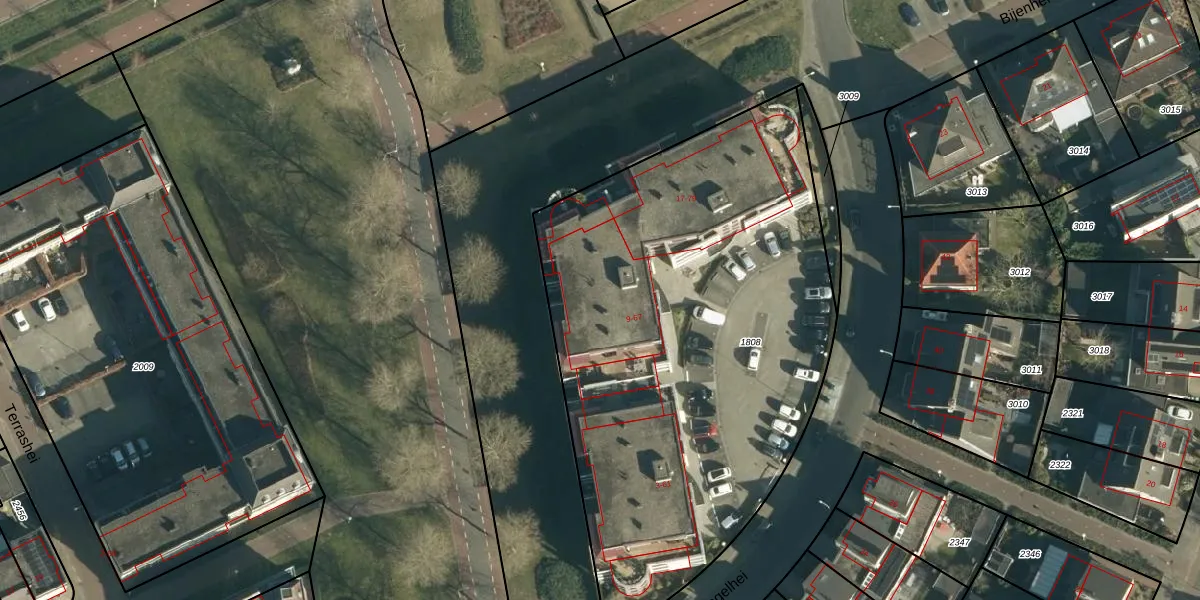 Het perceel waarop Vogelhei 39 staat heeft een oppervlakte van 2954 m². Dit is een zeer groot perceel. De perceeloppervlakte wordt geregistreerd door het Kadaster. Gedetailleerde informatie over de maten van dit perceel kunt u vinden in het rapport Kadastrale kaart met maatvoering van Vogelhei 39.