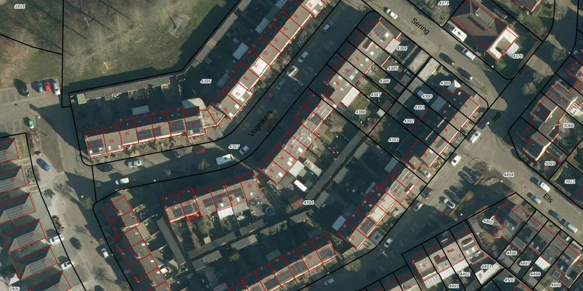Vogelkers 38 is gelegen op kadastraal perceel BES00H4394. Deze kadastrale aanduiding is uniek en wordt gebruikt door het Kadaster om eigendomsrechten en andere zakelijke rechten vast te leggen. Het perceel maakt onderdeel uit van de kadastrale gemeente Best.