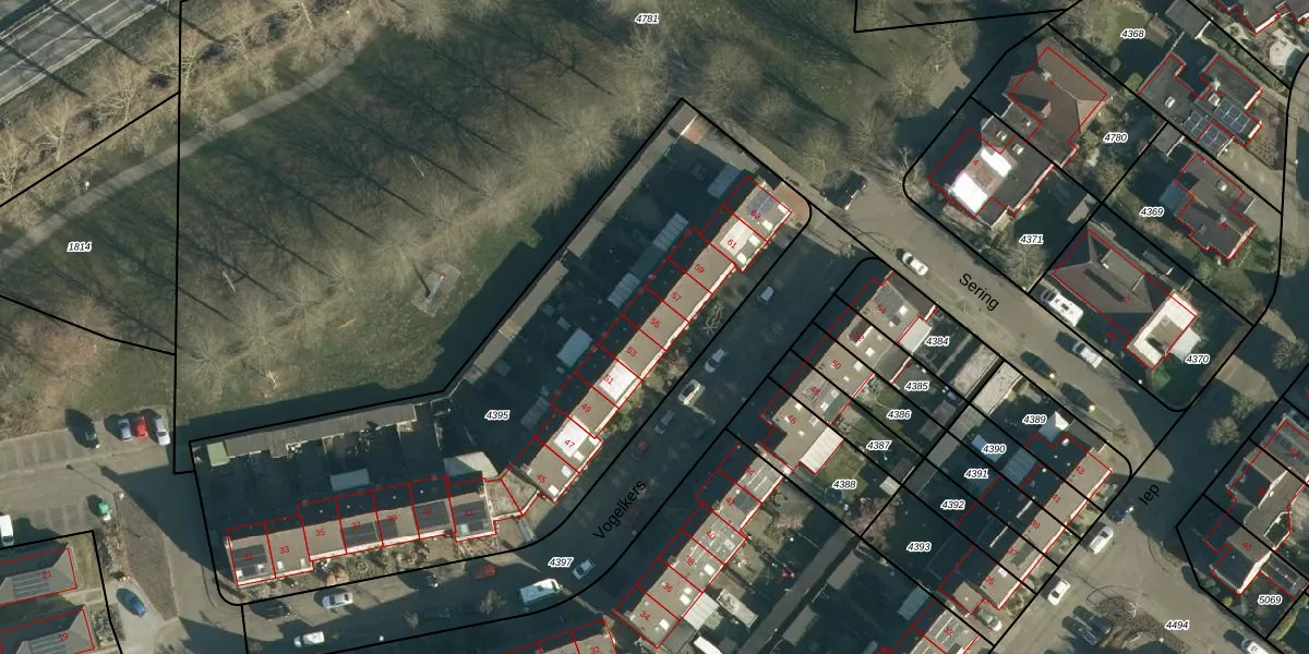 Het perceel waarop Vogelkers 55 staat heeft een oppervlakte van 2832 m². Dit is een zeer groot perceel. De perceeloppervlakte wordt geregistreerd door het Kadaster. Gedetailleerde informatie over de maten van dit perceel kunt u vinden in het rapport Kadastrale kaart met maatvoering van Vogelkers 55.