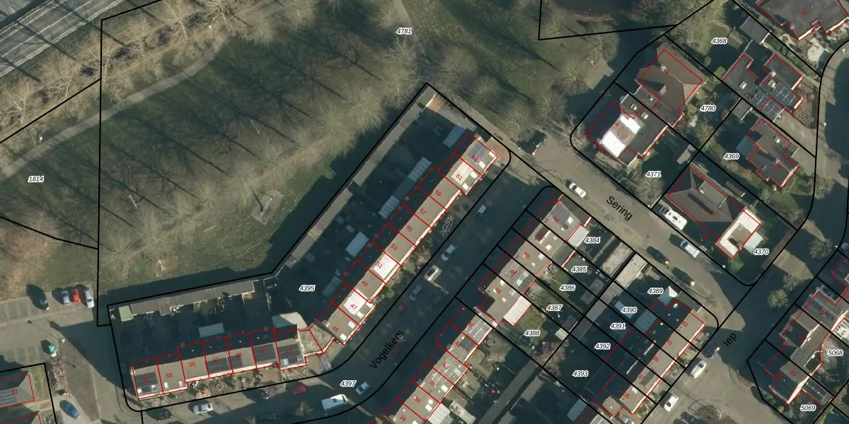 Vogelkers 57 is gelegen op kadastraal perceel BES00H4395. Deze kadastrale aanduiding is uniek en wordt gebruikt door het Kadaster om eigendomsrechten en andere zakelijke rechten vast te leggen. Het perceel maakt onderdeel uit van de kadastrale gemeente Best.