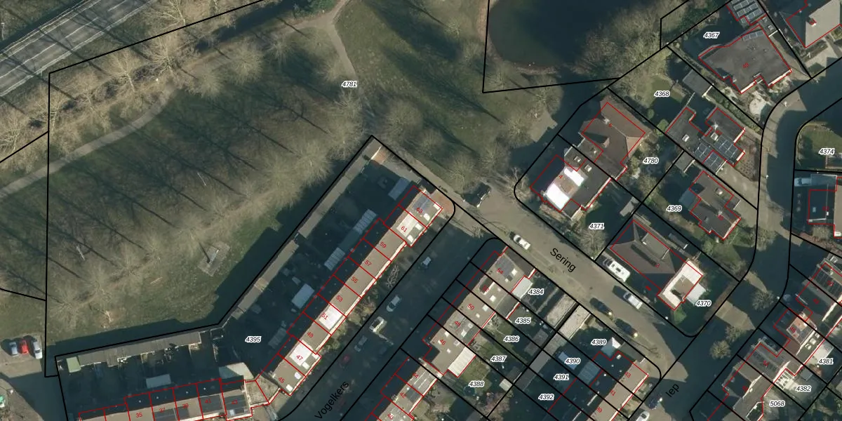 Het perceel waarop Vogelkers 63 staat heeft een oppervlakte van 2832 m². Dit is een zeer groot perceel. De perceeloppervlakte wordt geregistreerd door het Kadaster. Gedetailleerde informatie over de maten van dit perceel kunt u vinden in het rapport Kadastrale kaart met maatvoering van Vogelkers 63.