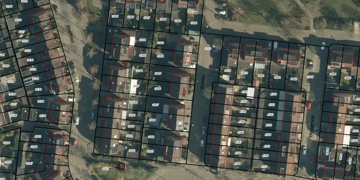 Gebruik de zoekbalk of klik op een perceel voor informatie over de adressen binnen dit perceel.