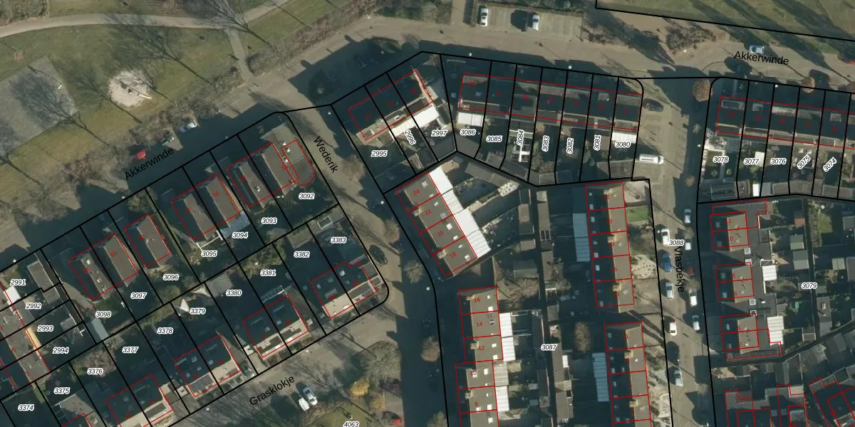 Het perceel waarop Wederik 22 staat heeft een oppervlakte van 3875 m². Dit is een zeer groot perceel. De perceeloppervlakte wordt geregistreerd door het Kadaster. Gedetailleerde informatie over de maten van dit perceel kunt u vinden in het rapport Kadastrale kaart met maatvoering van Wederik 22.