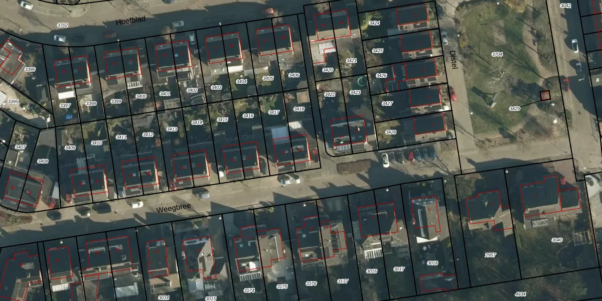 Gebruik de zoekbalk of klik op een perceel voor informatie over de adressen binnen dit perceel.