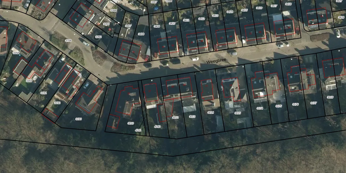Gebruik de zoekbalk of klik op een perceel voor informatie over de adressen binnen dit perceel.