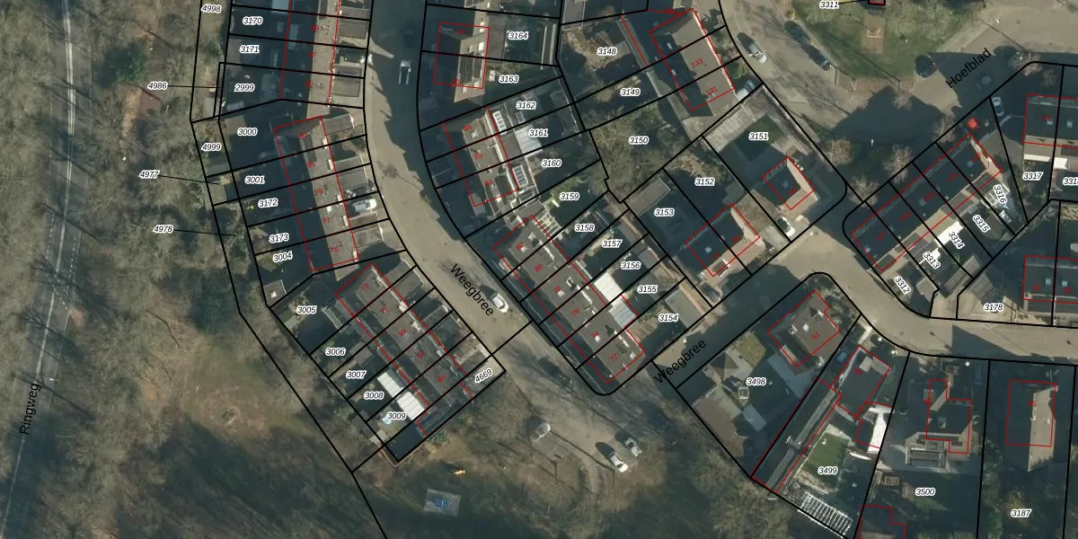 Gebruik de zoekbalk of klik op een perceel voor informatie over de adressen binnen dit perceel.