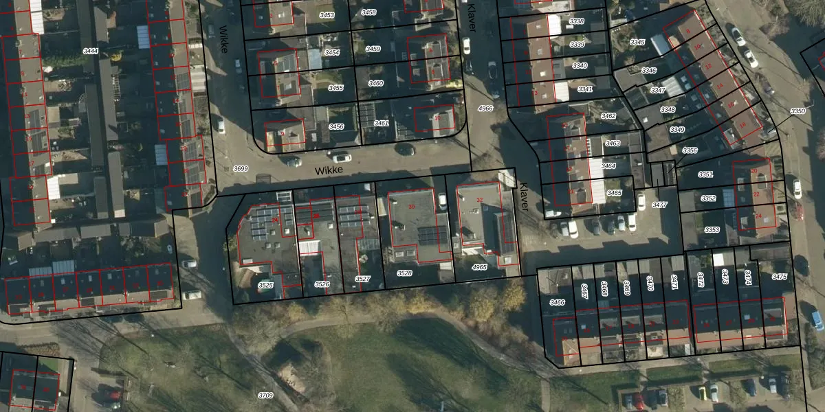 Gebruik de zoekbalk of klik op een perceel voor informatie over de adressen binnen dit perceel.