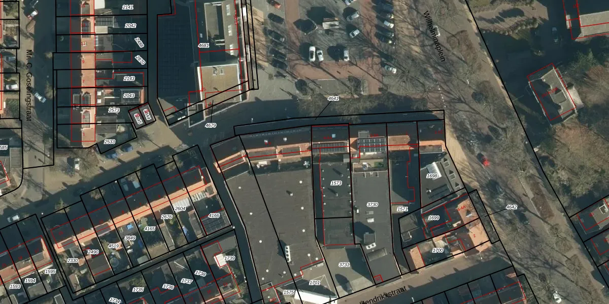 Het perceel waarop Wilhelminaplein 5 staat heeft een oppervlakte van 932 m². Dit is een groot perceel. De perceeloppervlakte wordt geregistreerd door het Kadaster. Gedetailleerde informatie over de maten van dit perceel kunt u vinden in het rapport Kadastrale kaart met maatvoering van Wilhelminaplein 5.