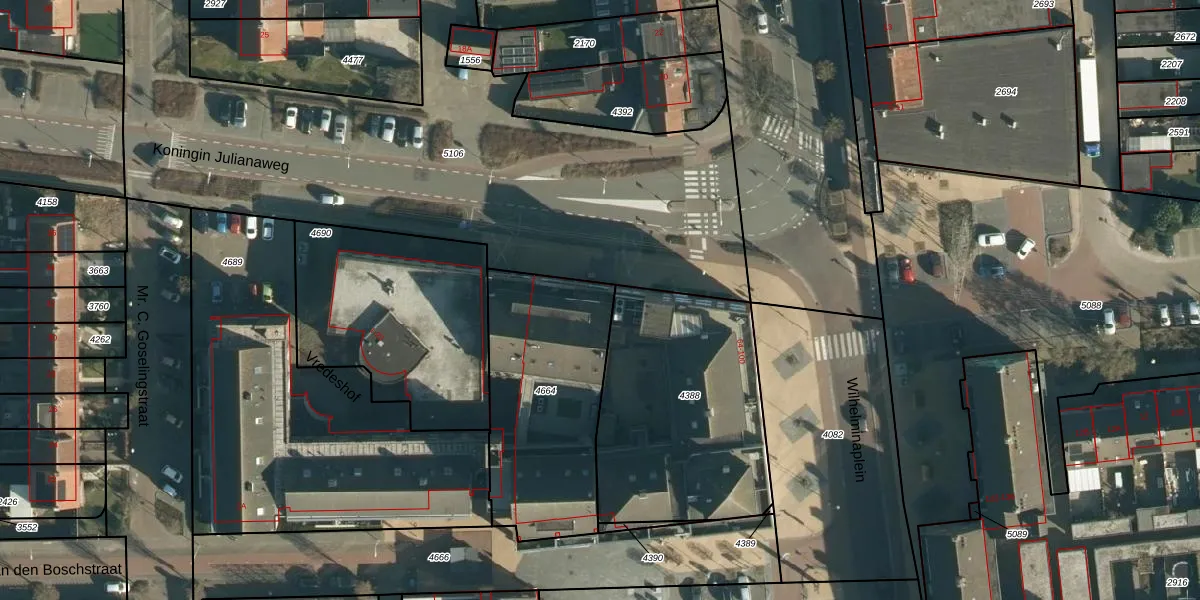 Wilhelminaplein 82 is gelegen op kadastraal perceel BES00C4664. Deze kadastrale aanduiding is uniek en wordt gebruikt door het Kadaster om eigendomsrechten en andere zakelijke rechten vast te leggen. Het perceel maakt onderdeel uit van de kadastrale gemeente Best.