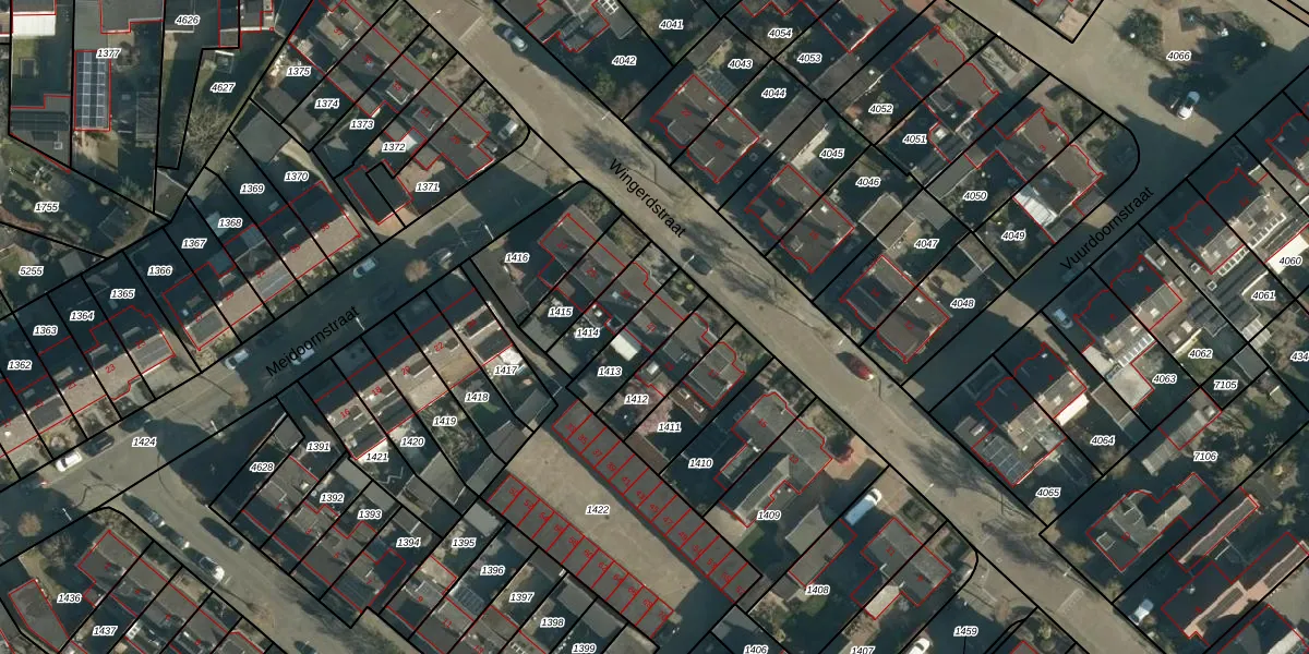 Gebruik de zoekbalk of klik op een perceel voor informatie over de adressen binnen dit perceel.