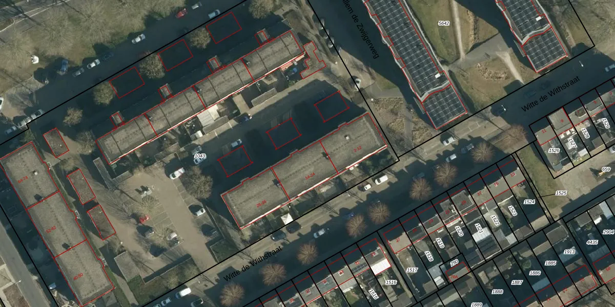 Het perceel waarop Witte de Withstraat 16 staat heeft een oppervlakte van 8353 m². Dit is een zeer groot perceel. De perceeloppervlakte wordt geregistreerd door het Kadaster. Gedetailleerde informatie over de maten van dit perceel kunt u vinden in het rapport Kadastrale kaart met maatvoering van Witte de Withstraat 16.