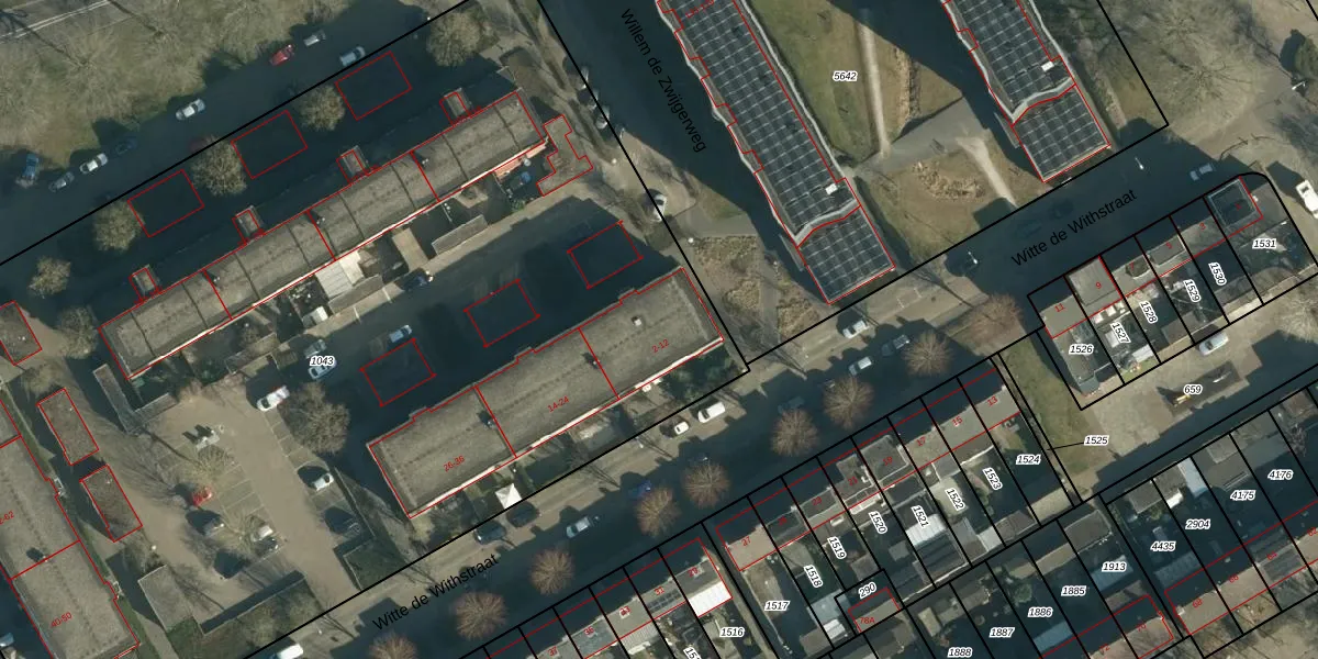 Het perceel waarop Witte de Withstraat 8 staat heeft een oppervlakte van 8353 m². Dit is een zeer groot perceel. De perceeloppervlakte wordt geregistreerd door het Kadaster. Gedetailleerde informatie over de maten van dit perceel kunt u vinden in het rapport Kadastrale kaart met maatvoering van Witte de Withstraat 8.